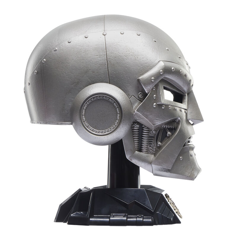 Vârstă: +14 ani. Scară: 1:1. Vine cu o curea interioară reglabilă (curea conține latex natural). Pentru prima dată în istoria jocurilor de rol din seria Marvel Legends, setul vine cu o glugă detașabilă din material textil care se atașează la masca Doctorului Doom. Poartă sau expune această cască cu sau fără glugă pentru a-ți imagina diferite scene inspirate din divertisment.